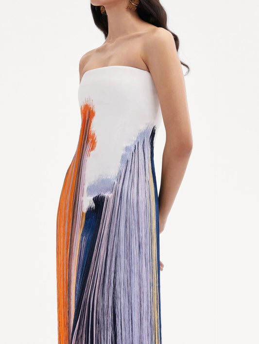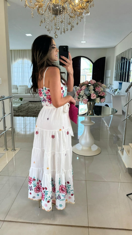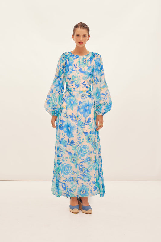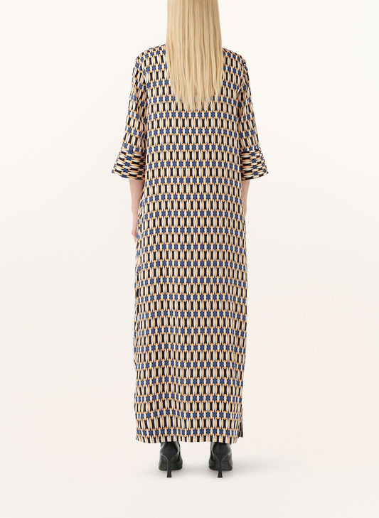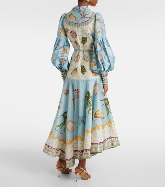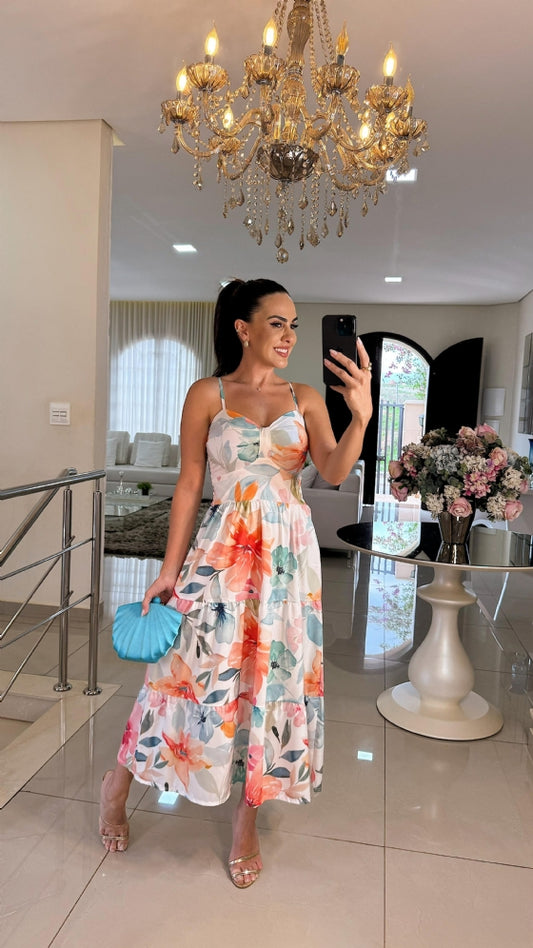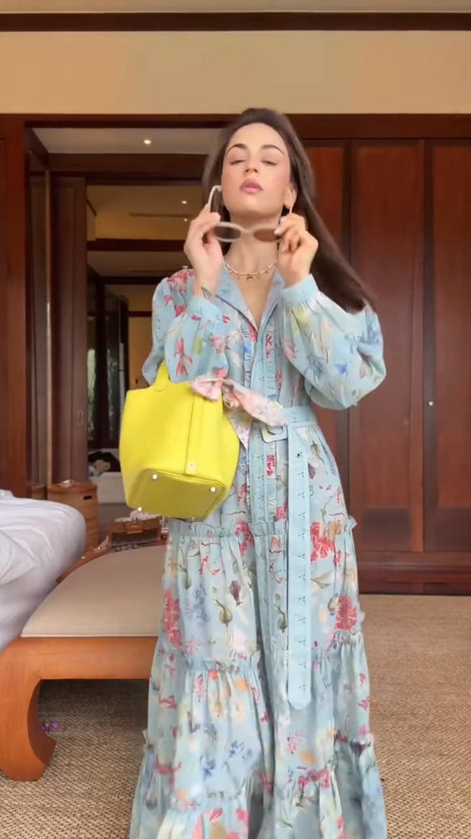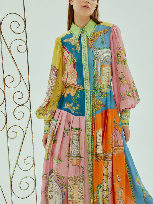 Bohemian Style Unique Printed V Tie Ring Maxi Dress