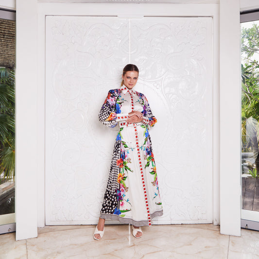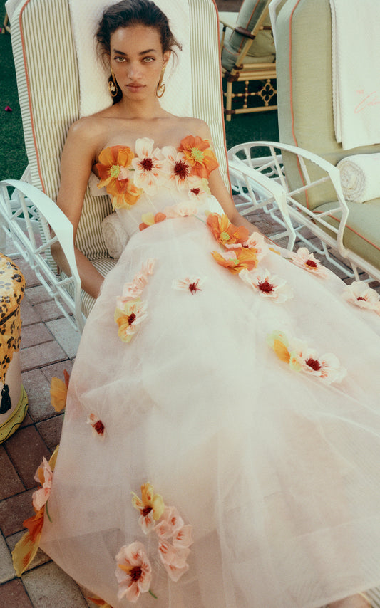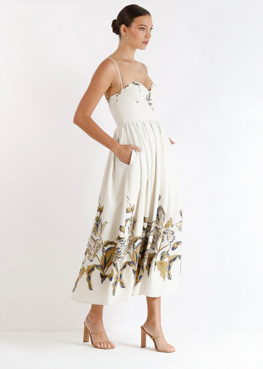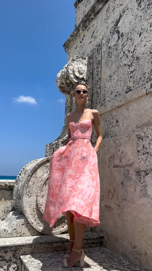 Floral Toile Printed Linen A-line Corset Gown - Pink
