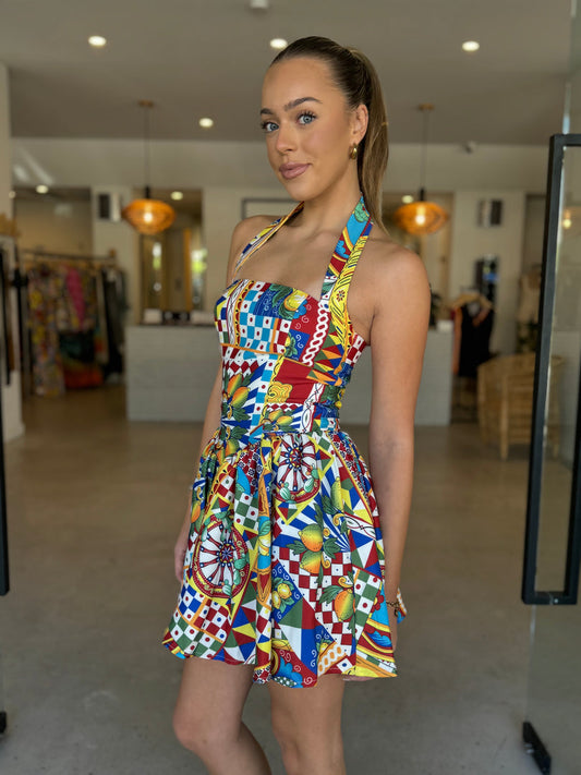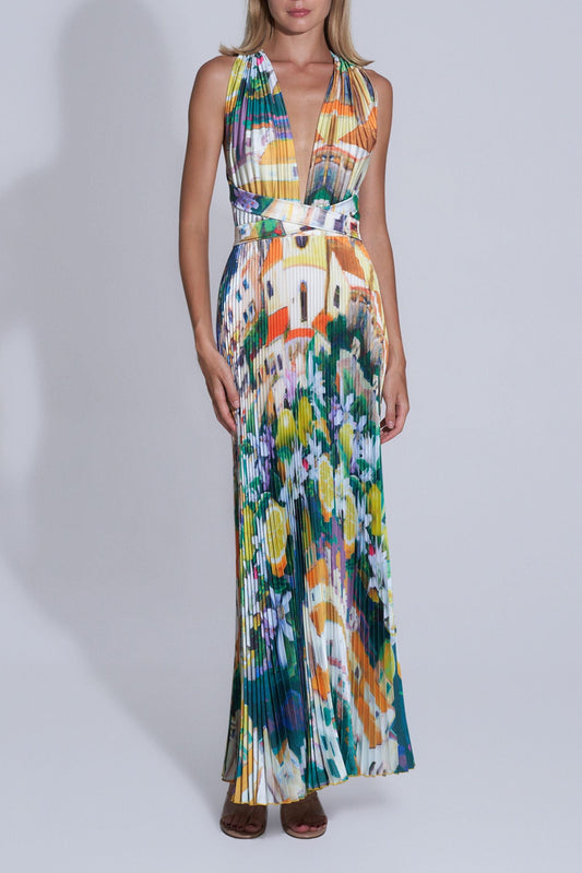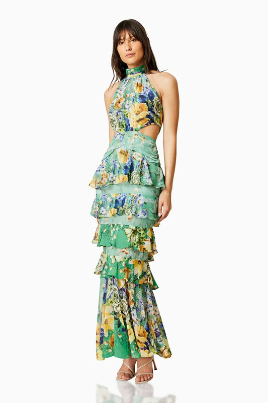 Exclusive Wavy Maxi Dress in Lemon Patchwork