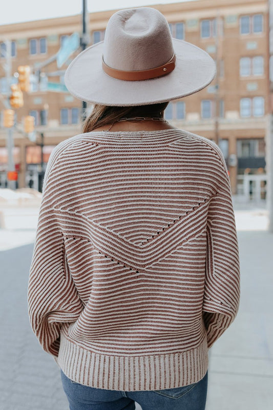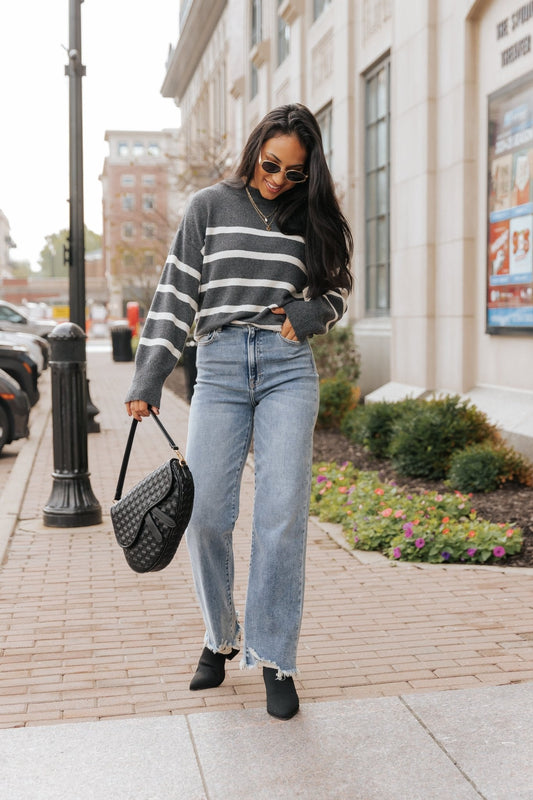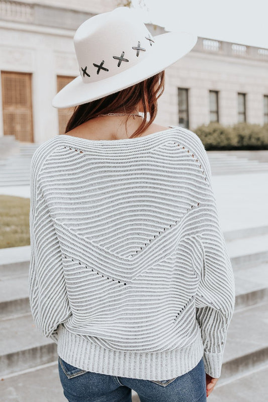 Two Tone Boatneck Charcoal Ribbed Sweater